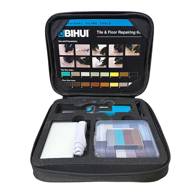 De set werkt met harde reparatiewax die na uitharding sterk en slijtvast is. Dankzij de uitgebreide kleurselectie en de mogelijkheid om kleuren te mengen, stem je de wax nauwkeurig af op de bestaande tegel of steensoort. Zo blijft de reparatie subtiel en valt deze nauwelijks op in het totaalbeeld.
