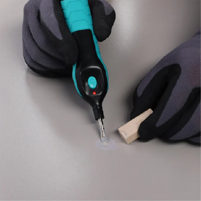 De elektrische waxtool zorgt voor gecontroleerd smelten van de wax, waardoor je precies en schoon kunt werken. Met de meegeleverde schrapers en spons werk je de reparatie zorgvuldig af tot een egaal resultaat.